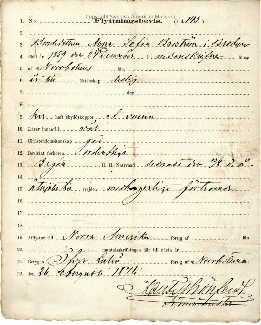 Moving certificate from Gethsemane Church, 1876.Context