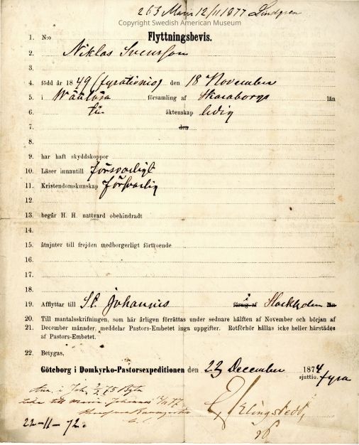 Moving certificate from Gethsemane Church, 1874.Context