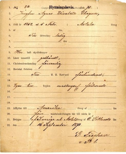 Associated with Agnes Elisabeth Ekegren.Acquisition