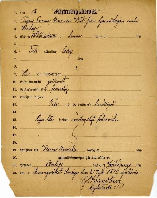Moving certificate from Gethsemane Church, 1870.Context