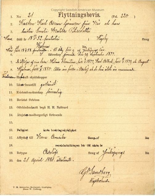 Certificate from Gethsemane Church, 1881.Context