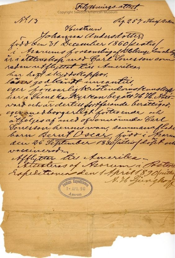 Associated with Anna Charlotta Anderson.