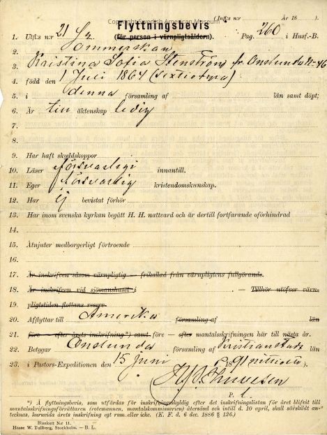 Certificate from Gethsemane Church, 1891.Context