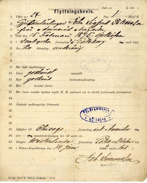 Certificate from Gethsemane Church, 1892.Context