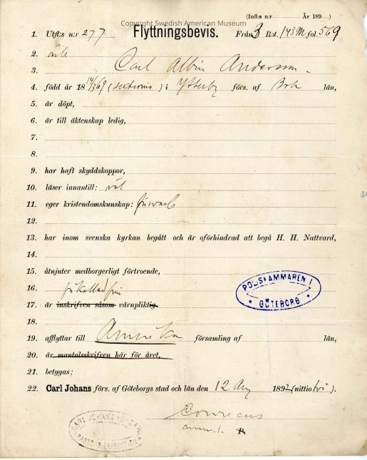 Associated with Carl Albin Andersson.Acquisition