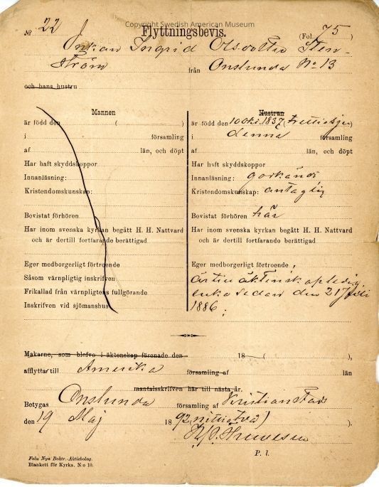 Associated with Ingrid Olsdotter Tenstrom(?).Acquisition
