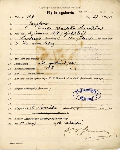 Certificate from Gethsemane Church, 1892.Context