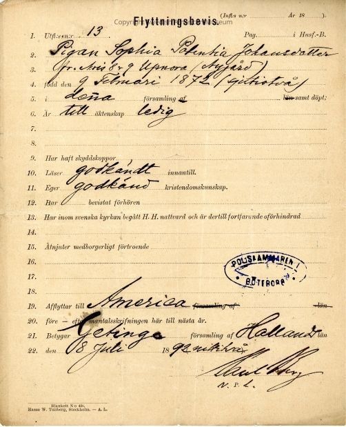 Certificate from Gethsemane Church, 1892.Context