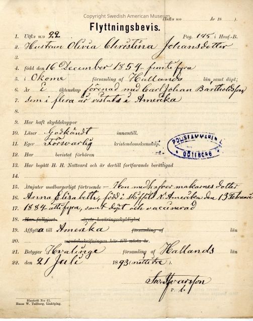 Certificate from Gethsemane Church, 1893.Context
