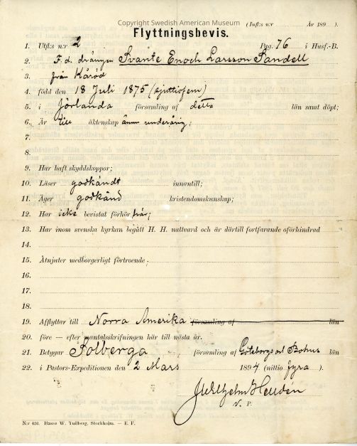 Associated with Svante Enoch Larsson Sandell(?).Acquisition
