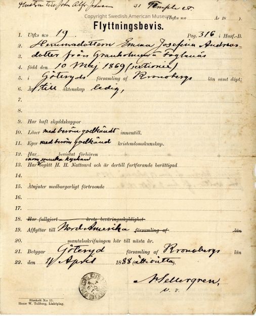 Associated with Emma Josefina Andersdotter.Acquisition