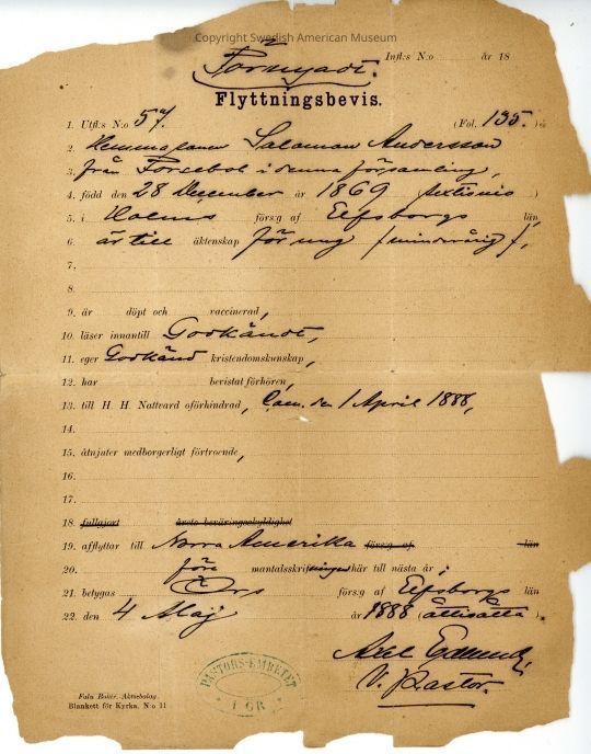 Certificate from Gethsemane Church, 1888.Context