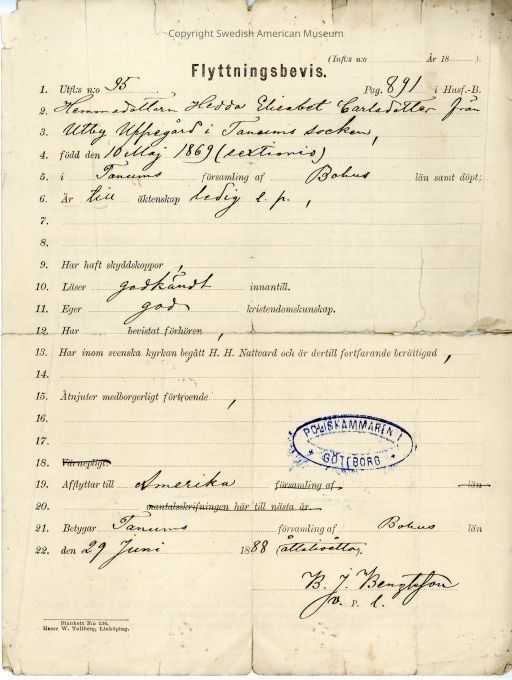Certificate from Gethsemane Church, 1888.Context