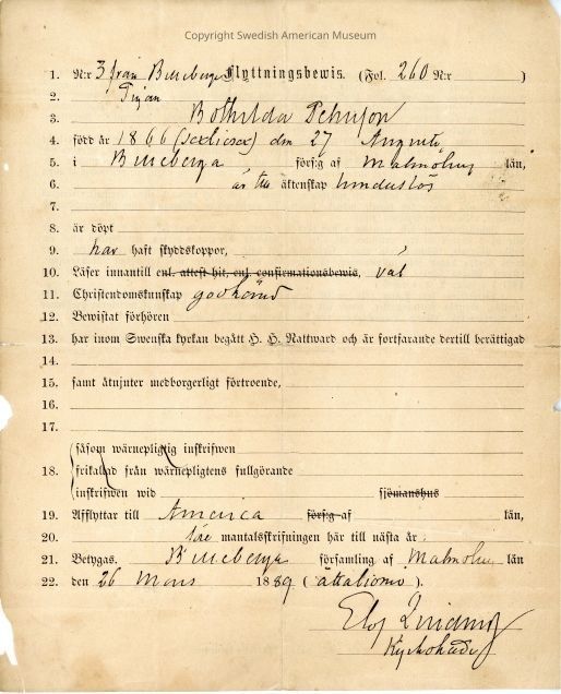 Certificate from Gethsemane Church, 1889.Context