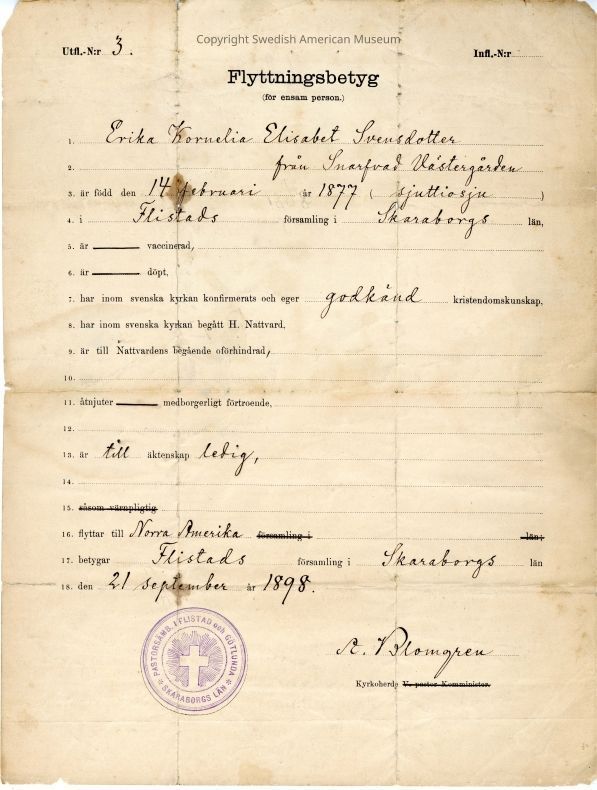 Associated with Erika Kornelia Elisabet Svensdotter.Acquisition