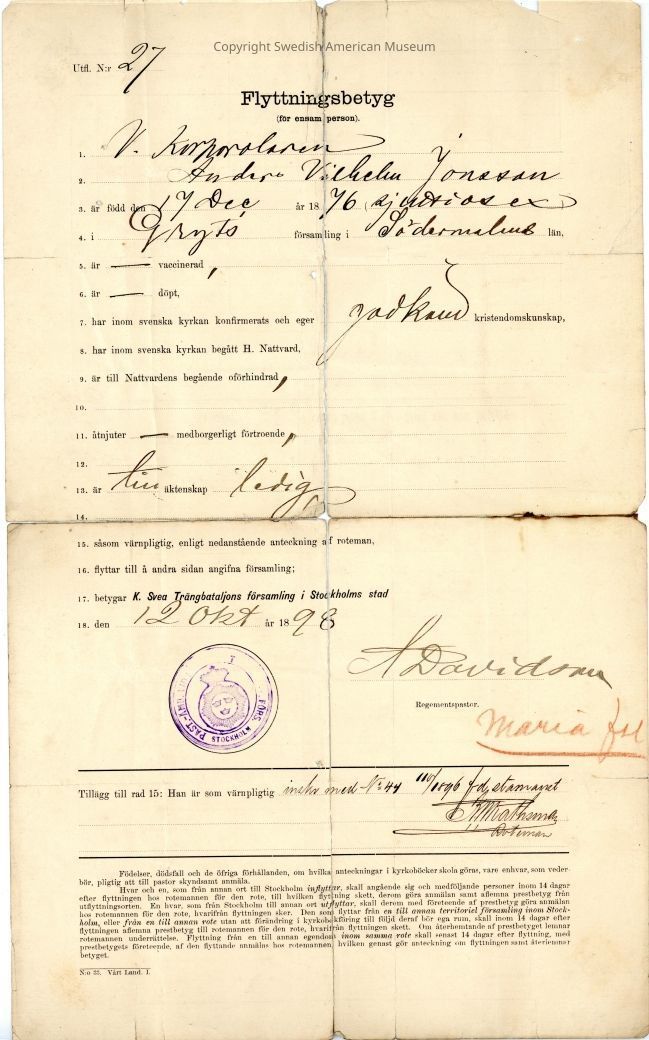 Certificate from Gethsemane Church, 1898.Context