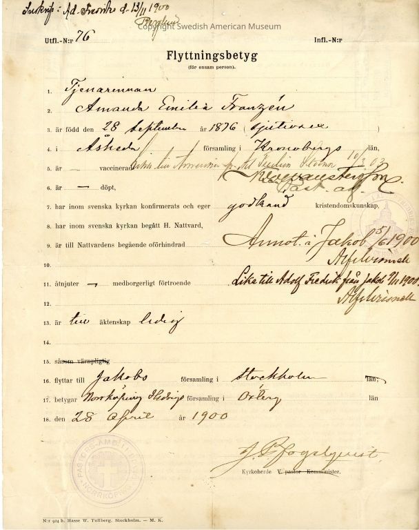 Associated with Amanda Emelia Franzen.Acquisition