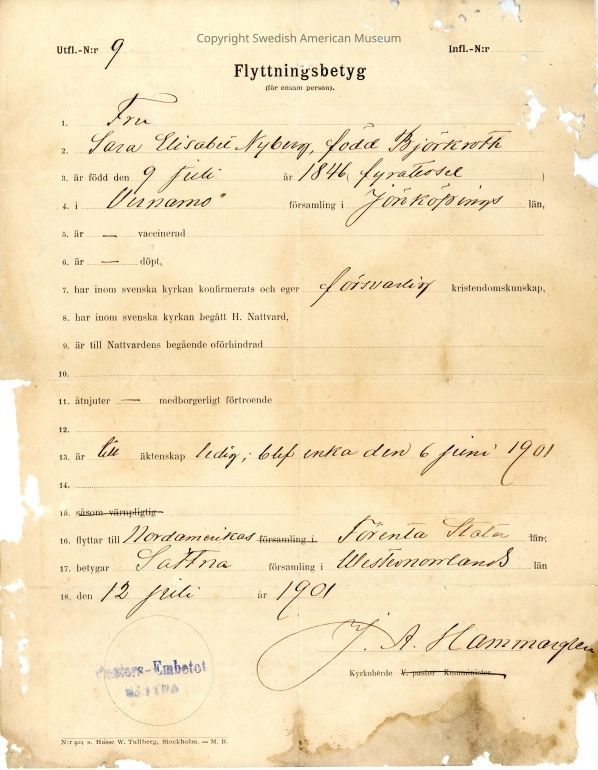 Associated with Sara Elisabet Nyberg.Acquisition
