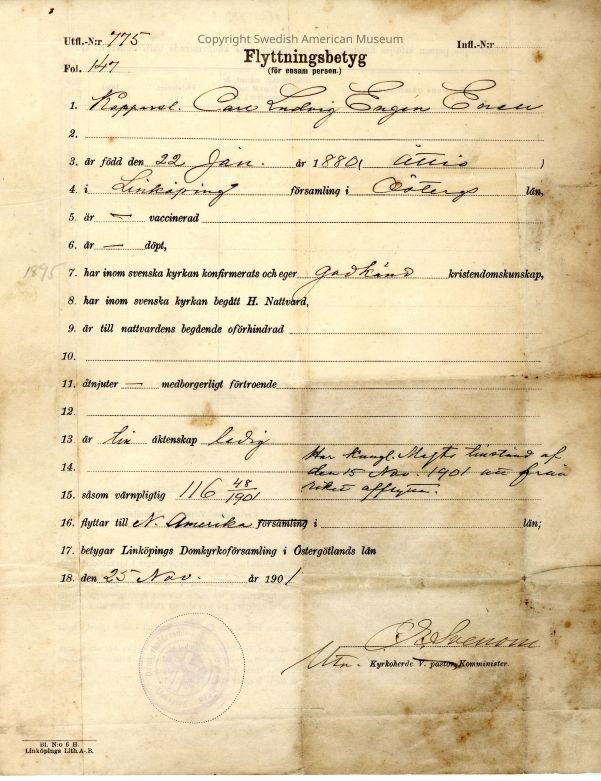 Certificate from Gethsemane Church, 1901.Context