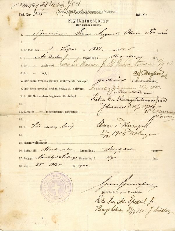 Associated with Emma Augusta Olivia Hansen.Acquisition