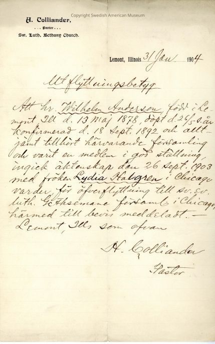 Associated with Wilhelm Andersson.Acquisition