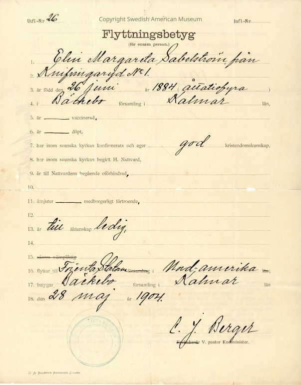 Certificate from Gethsemane Church, 1904.Context