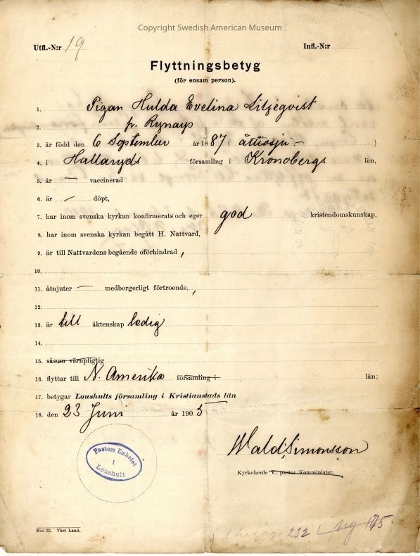 Associated with Hulda Evelina Liljiqvist(?).Acquisition