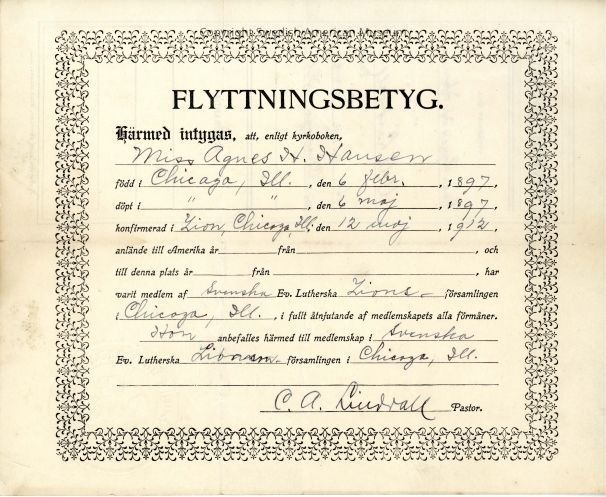 Certificate from Swedish Evangelical Lutheran Lebanon Church.Context