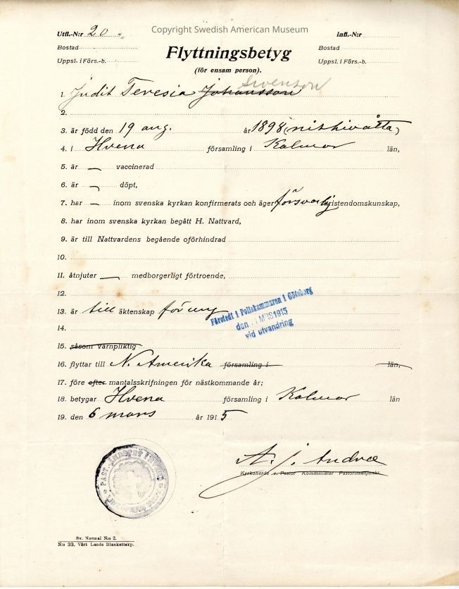 Certificate from Gethsemane Evangelical Lutheran Church, 1915.Context
