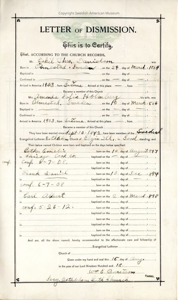Associated with Eskil Theo Danielson.Acquisition