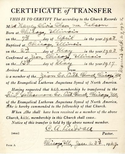 Document from Gethsemane Evangelical Lutheran Church, 1929.Context