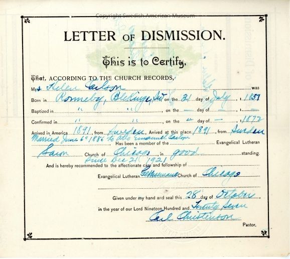 Document from Gethsemane Evangelical Lutheran Church, 1927.Context