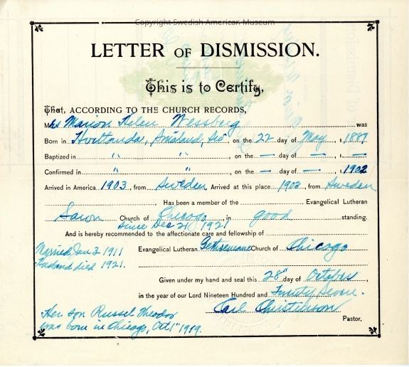 Document from Gethsemane Evangelical Lutheran Church, 1927.Context