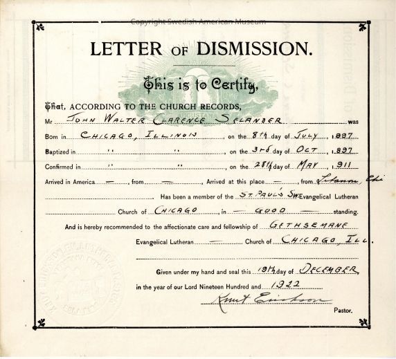 Document from Gethsemane Evangelical Lutheran Church, 1922.Context
