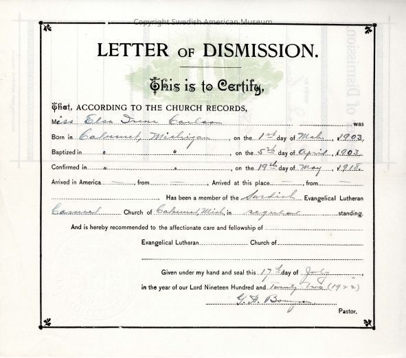 Document from Gethsemane Evangelical Lutheran Church, 1923.Context