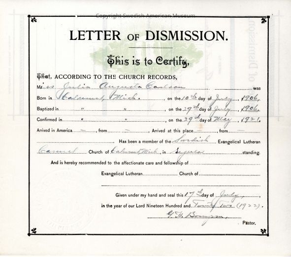 Document from Gethsemane Evangelical Lutheran Church, 1922.Context