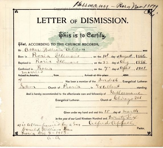 Document from Gethsemane Evangelical Lutheran Church, 1925.Context