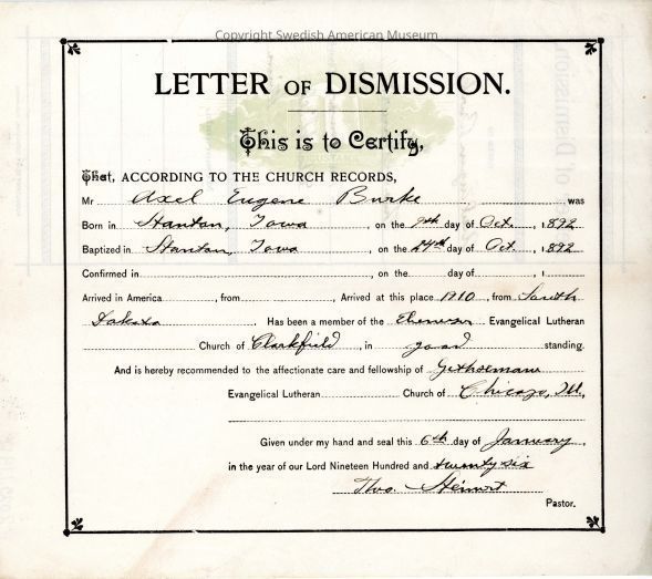 Document from Gethsemane Evangelical Lutheran Church, 1926.Context