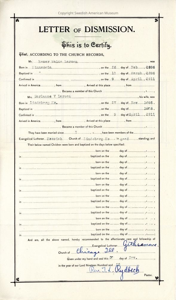 Document from Gethsemane Evangelical Lutheran Church, 1928.Context