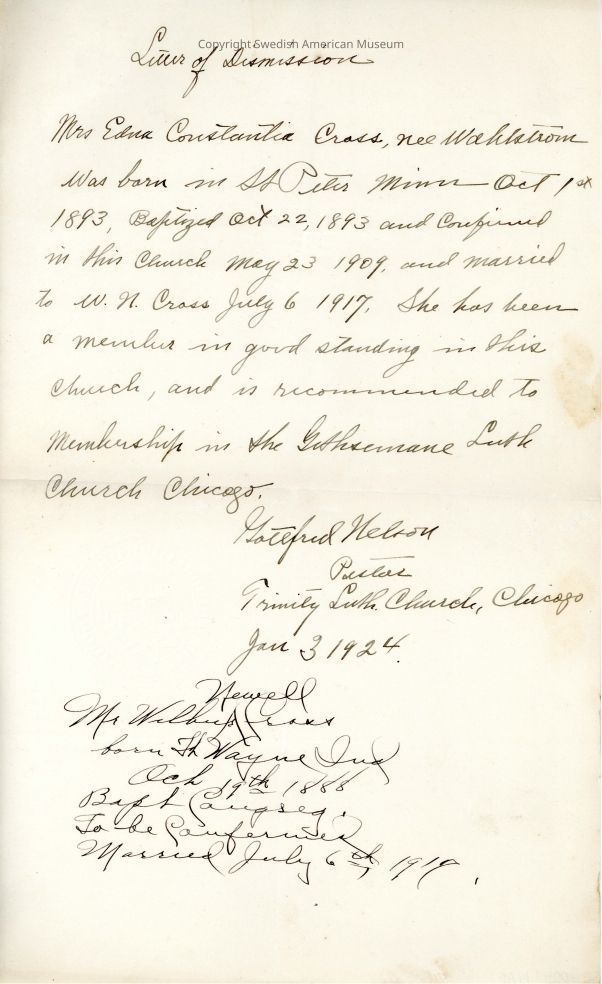 Document from Gethsemane Evangelical Lutheran Church, 1924.Context