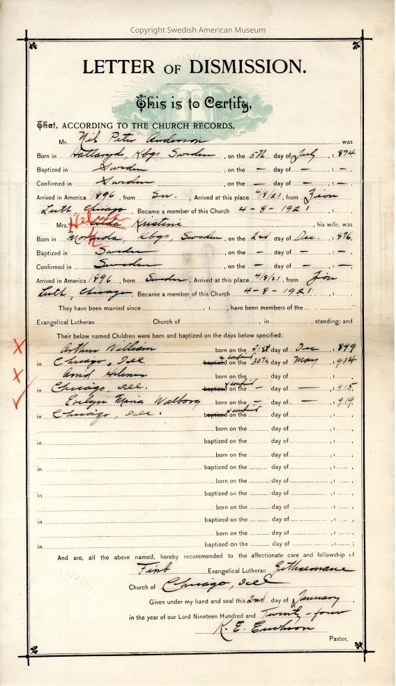 Document from Gethsemane Evangelical Lutheran Church, 1924.Context