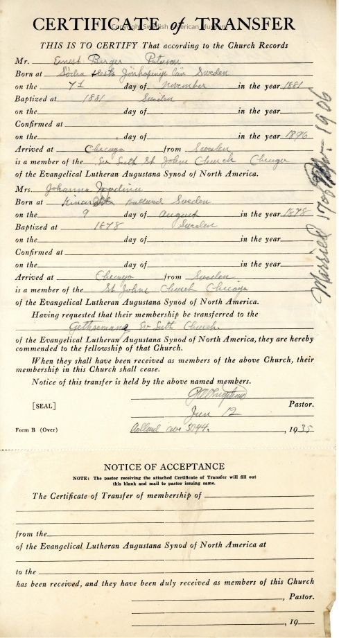 Document from Gethsemane Evangelical Lutheran Church, 1935.Context