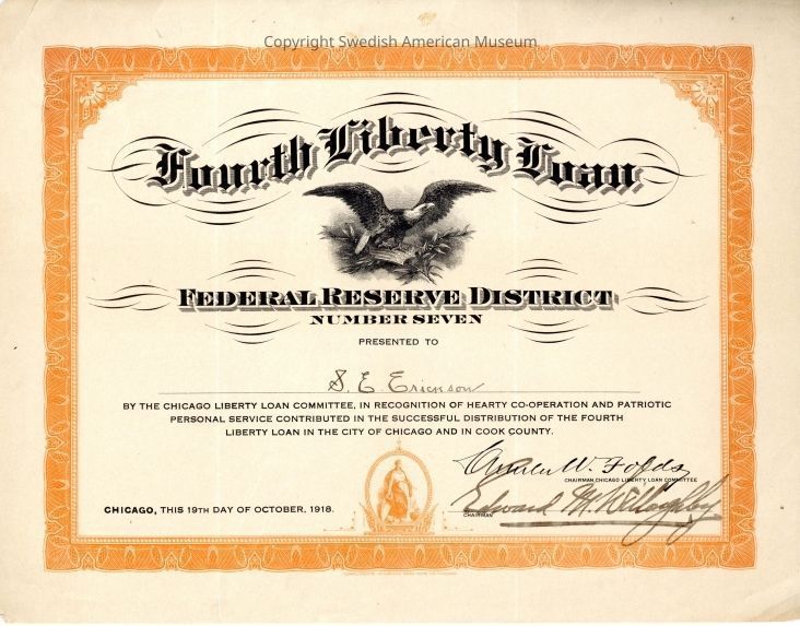 Fourth Liberty Loan Certificate to Sam Erickson October 18, 1919.Acquisition