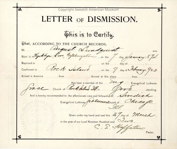 Certificate from Gethsemane Church, 1902.Context