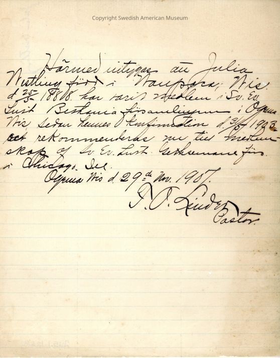 Handwritten document from Gethsemane Church, 1907.Context