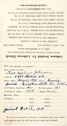 Document from Lebanon Swedish Evangelical Church, 1919.Context