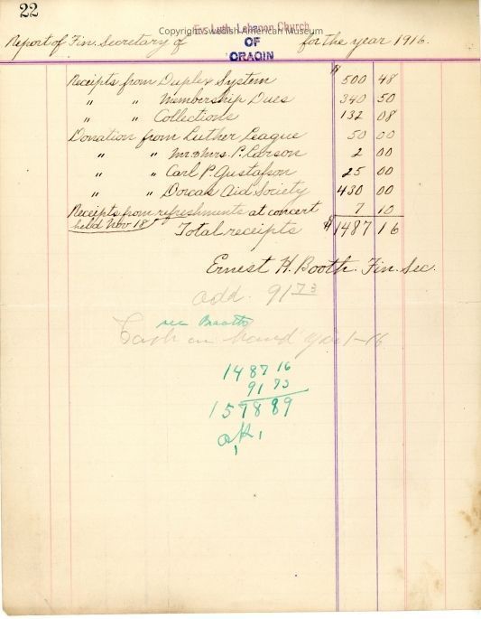 Document from Gethsemane Evangelical Lutheran Church, 1916.Context