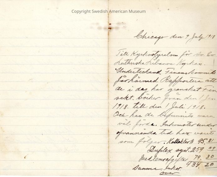 Document from Gethsemane Evangelical Lutheran Church, 1918.Context
