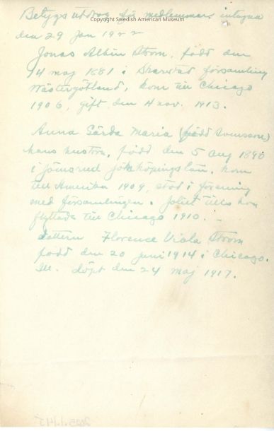 Associated with Jonas Albinstrom(?).Acquisition