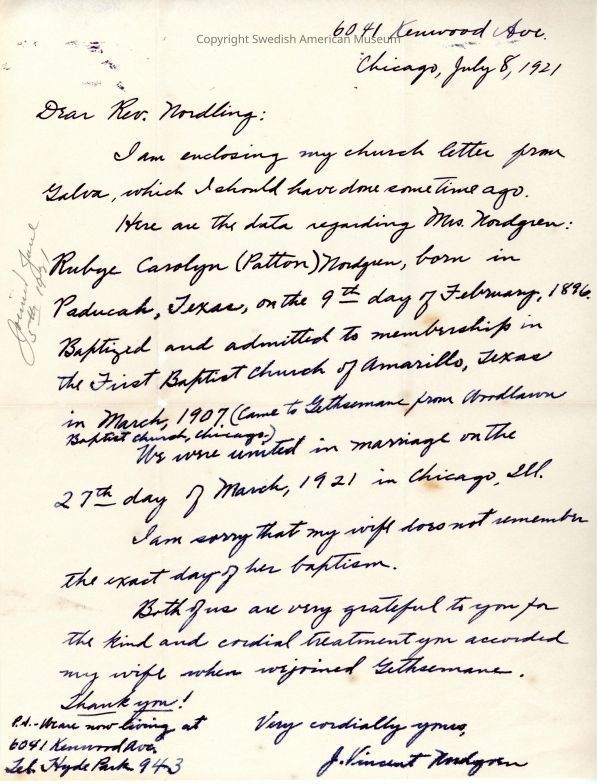Document from Gethsemane Evangelical Lutheran Church, 1921.Context